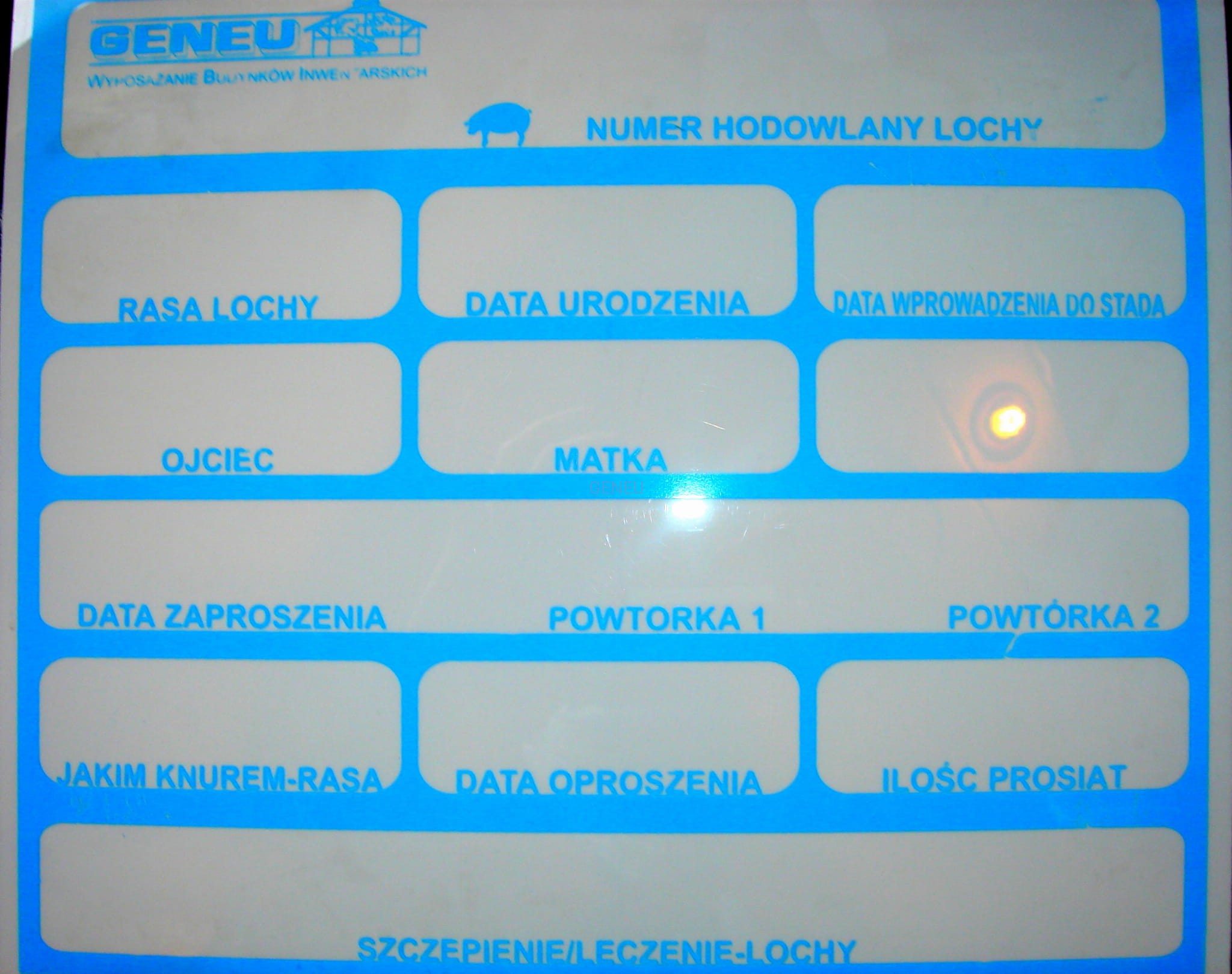 Tabliczka identyfikacyjna dla trzody chlewnej . Wymiary 33,4cm x 28,5 cm